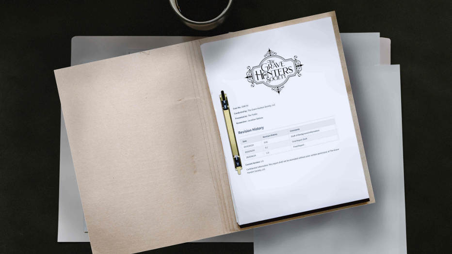 Case No. 1000-01 Conducted by: The Grave Hunters Society, LLC Presented to: The Public Researcher: Jonathan Batteas Revision History Date Revision History Comments 2014/26/10 0.01 Draft of Background Information 2020/06/03 0.1 First Report Draft 2020/06/24 1.0 Final Report Current Version: 1.0 Confidential Information This report shall not be excerpted without prior written permission of The Grave Hunters Society, LLC